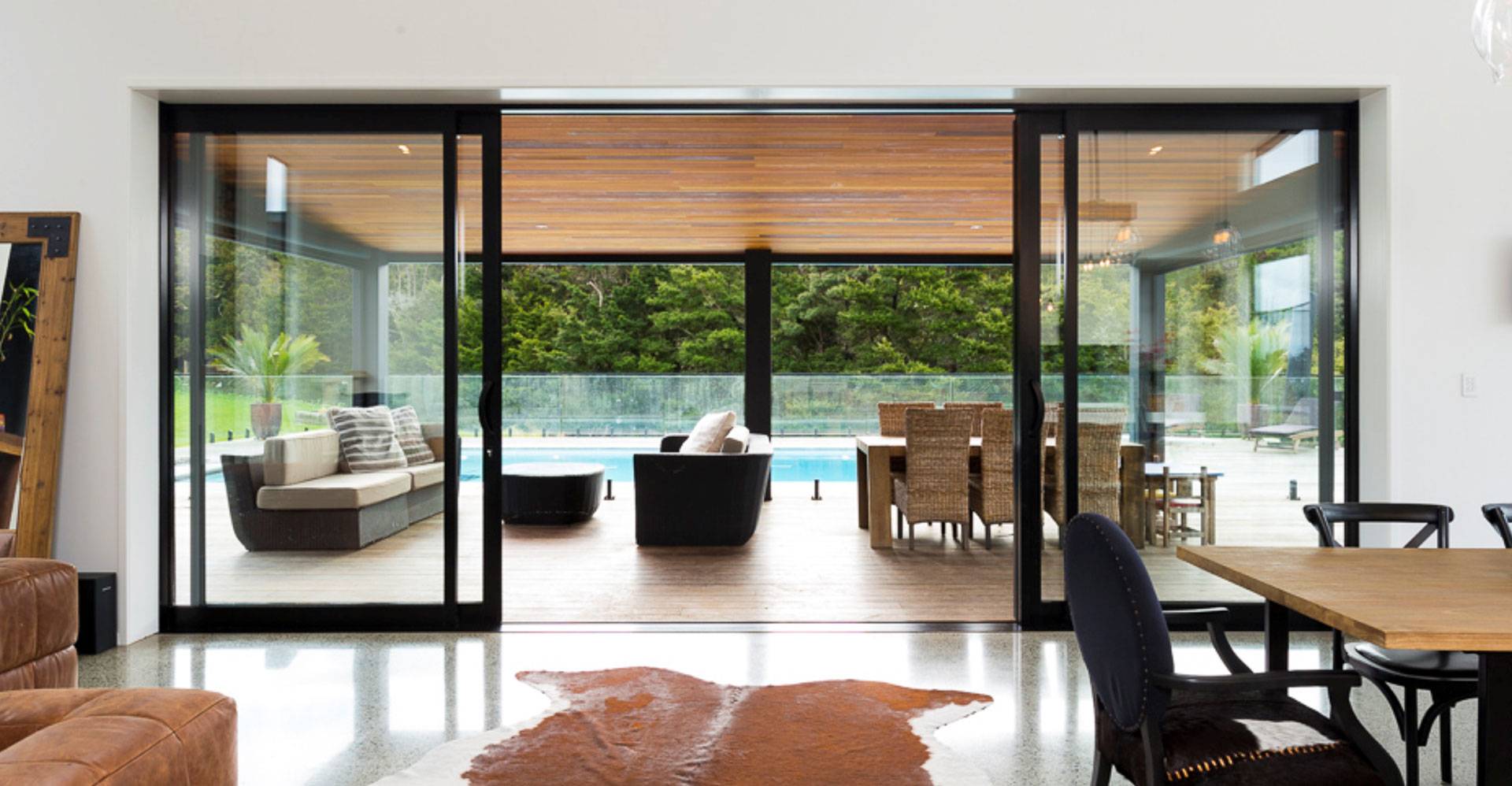Sliding doors open are a great option for opening onto patios and decks. They can be configured while staying flush with the wall, allowing quick access to the outdoors, even in tight spaces. The can be configured to have multiple configurations of sliding and fixed panels to suit your design. They maximise light and open up living spaces enhancing the liveability of your home .
