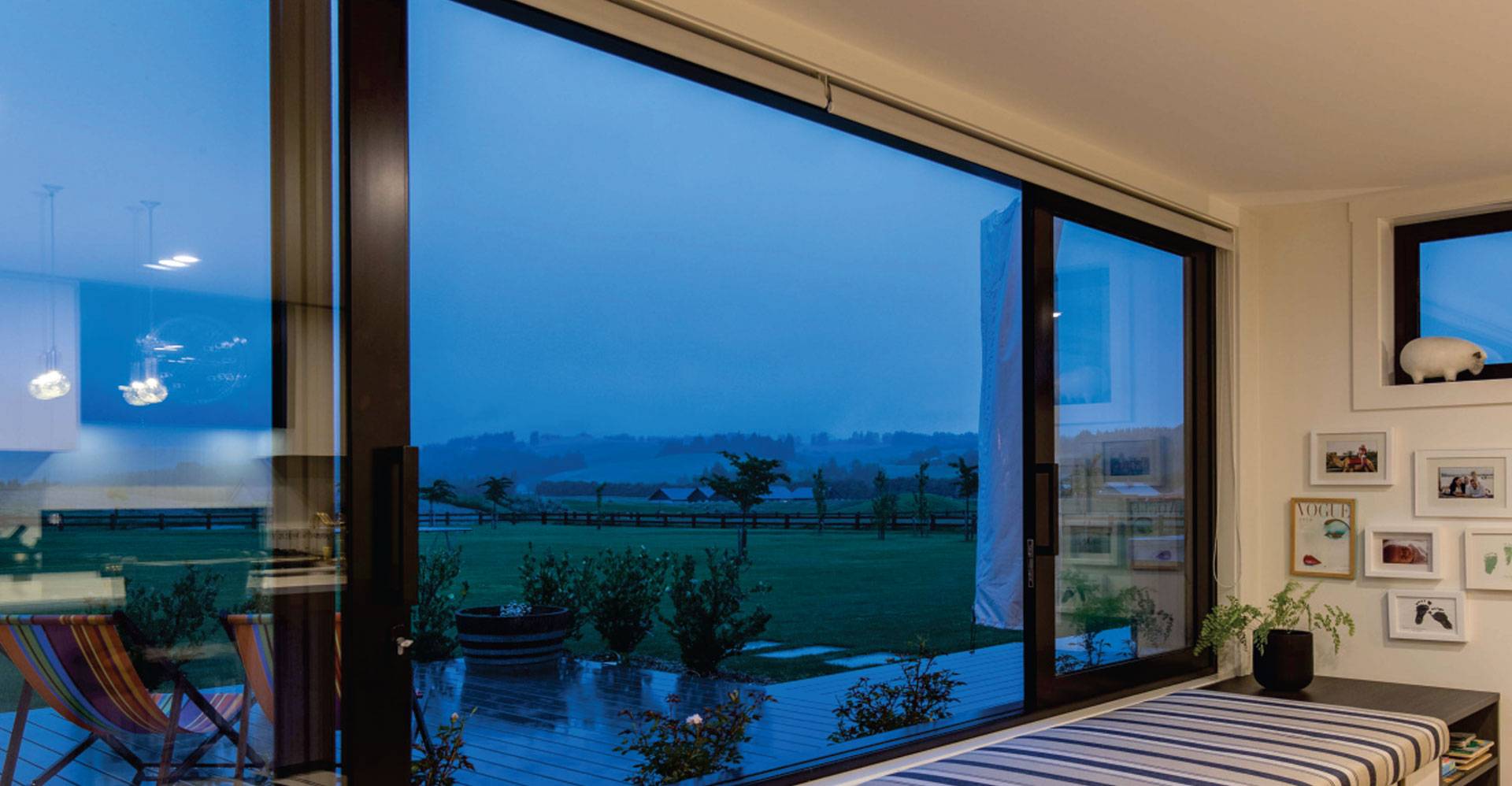 One of the popular designs for rooms is a wide sliding window that creates an illusion of more space and presents wide views and excellent air flow.